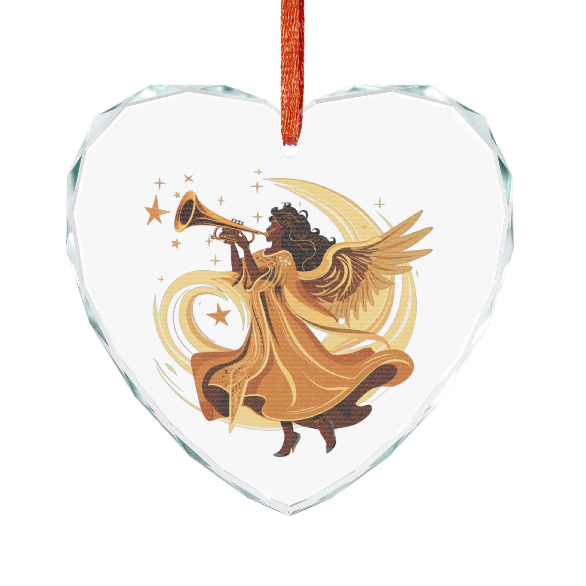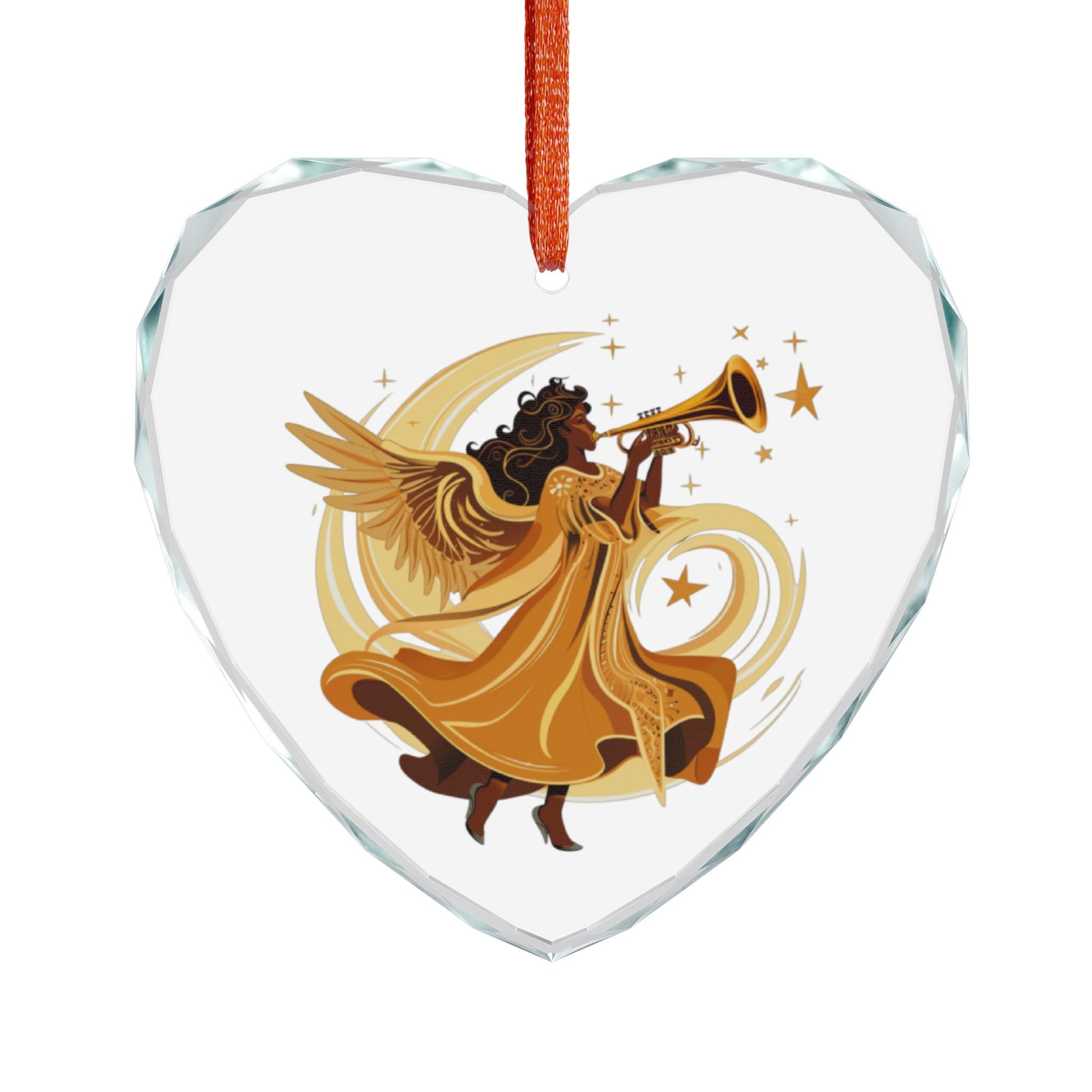 Angel Trumpet Crystal Ornament, Heart Shaped Decoration, Unique Holiday Gift, Christmas Tree Ornament, Home Décor Keepsake