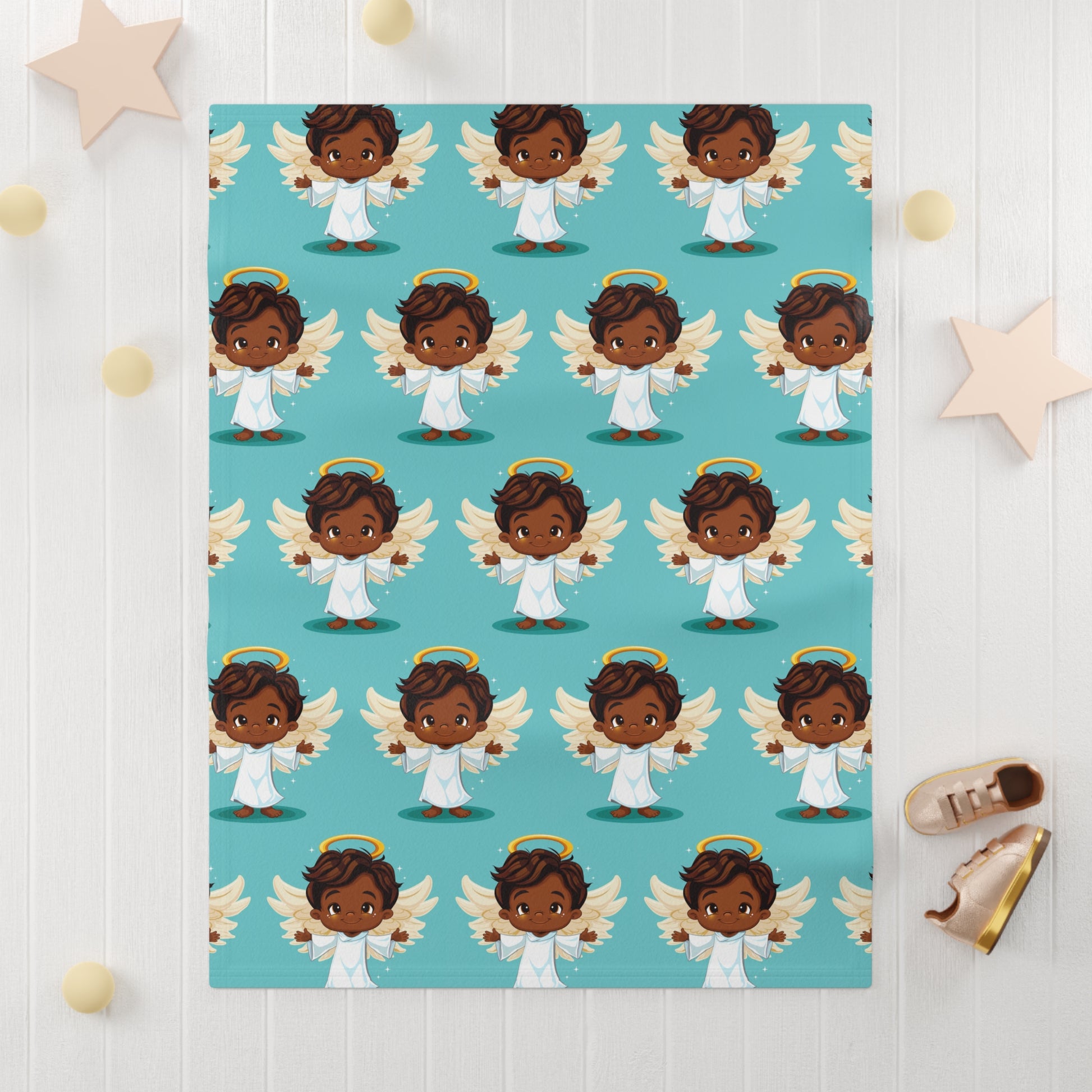 Wrap your little one in warmth and comfort with this delightful Soft Fleece Baby Blanket. Featuring a whimsical design with adorable angelic figures, it evokes a cheerful and nurturing atmosphere. Perfect for cozying up during storytime or adding a touch of charm to a nursery, this blanket is an ideal companion for both playtime and relaxation. It's great for new parents, baby showers, or as a thoughtful gift for special celebrations like birthdays and holidays, including Christmas and Easter. Whether used in a crib or during outdoor outings, this blanket will surely bring joy and comfort to any baby’s world.